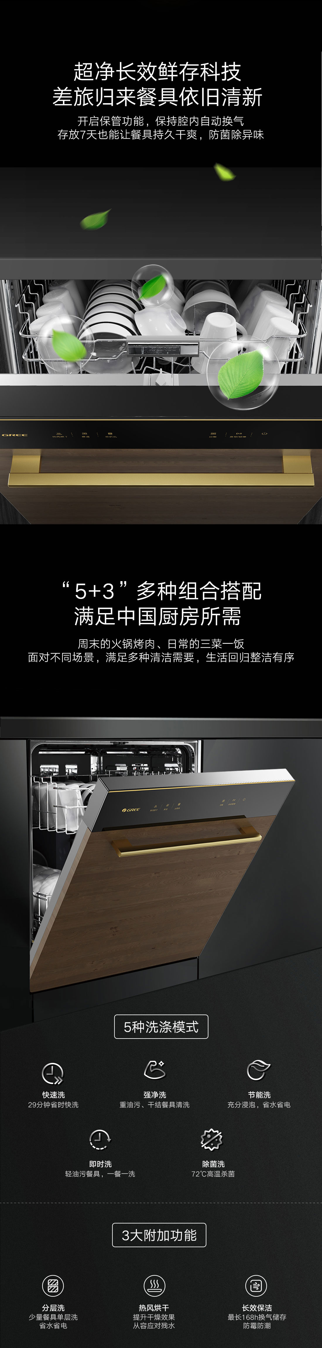 搭載瀑式增壓強洗科技,36KPa洗凈深層菌污,除菌率達99.99%;洗烘除存一體,存放7天也干爽