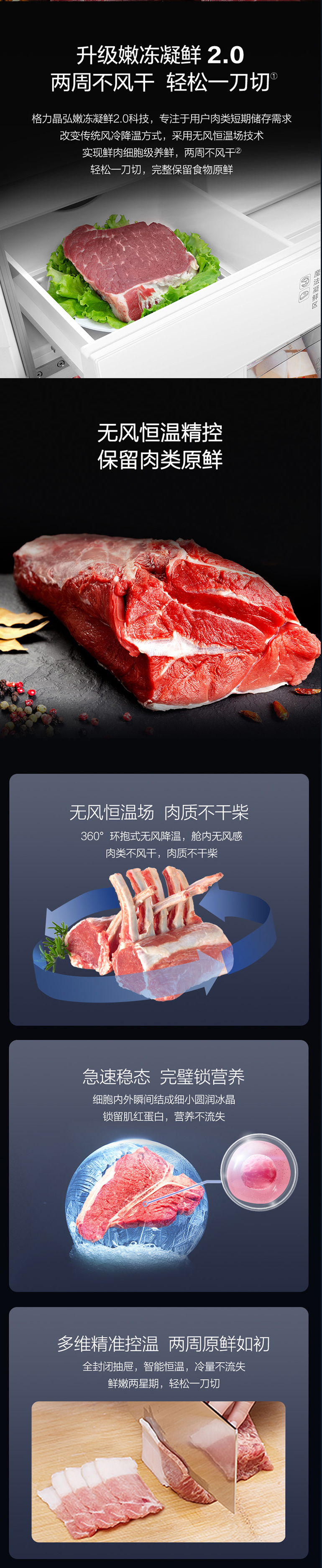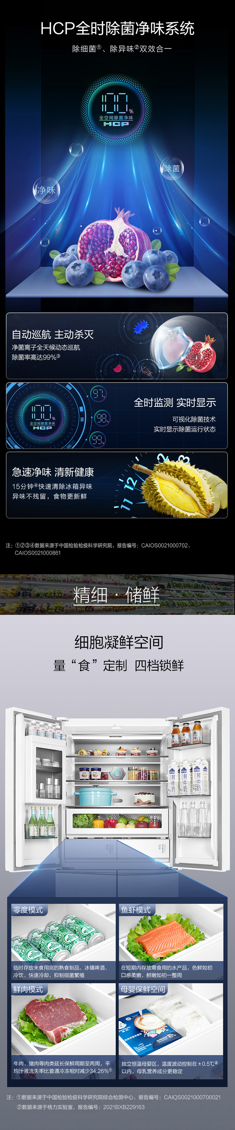 -38℃超凍鎖鮮;光合水潤(rùn)養(yǎng)鮮;嫩凍凝鮮2.0;HCP全時(shí)除菌凈味